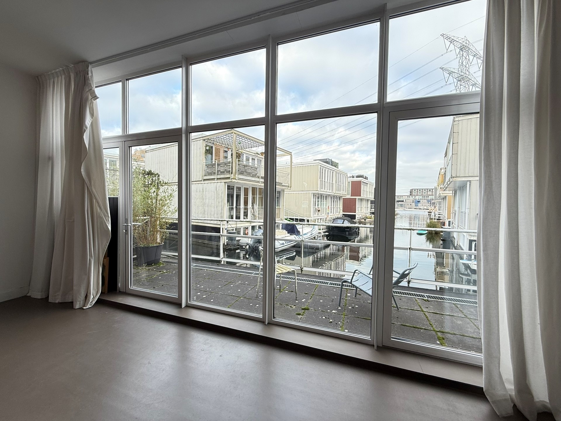 Via de glazen toegangsdeur betreedt u de ruimte. In het midden aan de rechterkant van de ruimte is de pantry, toilet, meterkast en opbergruimte gesitueerd. Het overige gedeelte van de ruimte is volledig open. Aan de achterzijde van de unit bevindt zich een ruim terras met prachtig uitzicht over het water. Doordat het een open ruimte is met aan beide zijden raampartijen, kan de ruimte indien wenselijk ook eenvoudig opgedeeld worden.